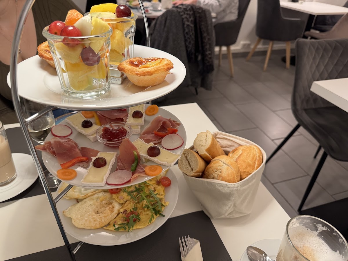 The true stars of Cafe Baguetterie Ambiente are undoubtedly their mouthwatering menu items. The highlight is their extensive selection of homemade Baguettes, which are prepared with love and attention to detail. Enjoy a sumptuous breakfast, just like Sascha Plum did, featuring a lavishly arranged platter that includes all the breakfast essentials. Priced just under 30€, this delightful spread, paired with two glasses of sparkling wine and two rich lattes, is an experience you won't want to miss.
